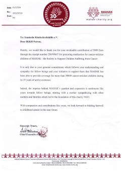Bisher haben wir mit der Unterstützung durch unsere Spender diese Einnahmen erzielen können: